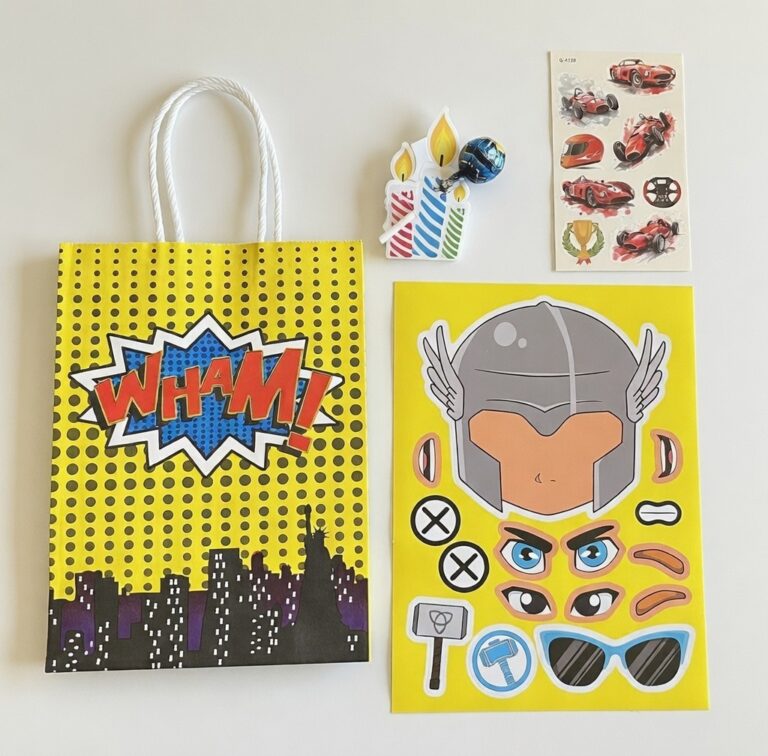 توزيعة عيد ميلاد After Party كيس ورق الأبطال الخارقين+ حامل مصاصة مع مصاصة+ورقة تاتو+ستيكر