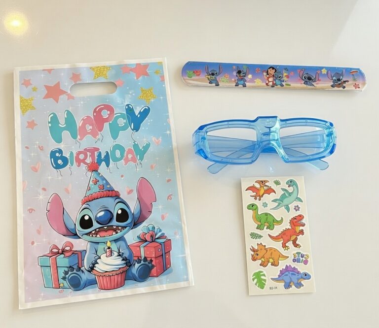 توزيعة عيد ميلاد After Party كيس ستيش+ اسوارة قابلة للطي+ورقة تاتو+ نظارة led